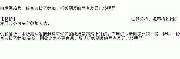 要在甲乙两名学生中选拔一人参加国家数学冬令营集训.经统计,两人近期的8次测试成绩分别制作成统计图、表如下.如果让你选拔,打算让谁参加?两种统计表示中,哪一种较能直观地反映出两者的差异?