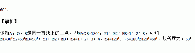如图,是同一直线上的三点,是从O点引出的三条射线,且::::2:3:4,则______ 度