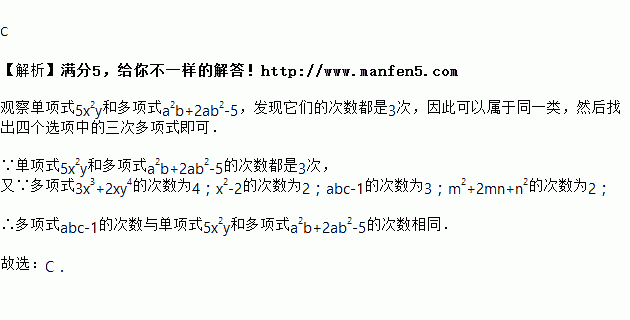 按某种标准,单项式和多项式属于同一类,则下列哪一个多项式也属于此类( )