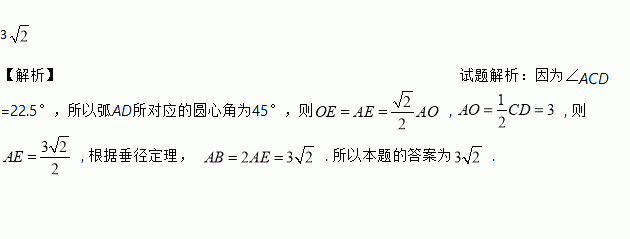 如图,已知⊙O的直径CD垂直于弦AB,∠ACD=22.5°,若CD=6cm,则AB的长为_____cm.