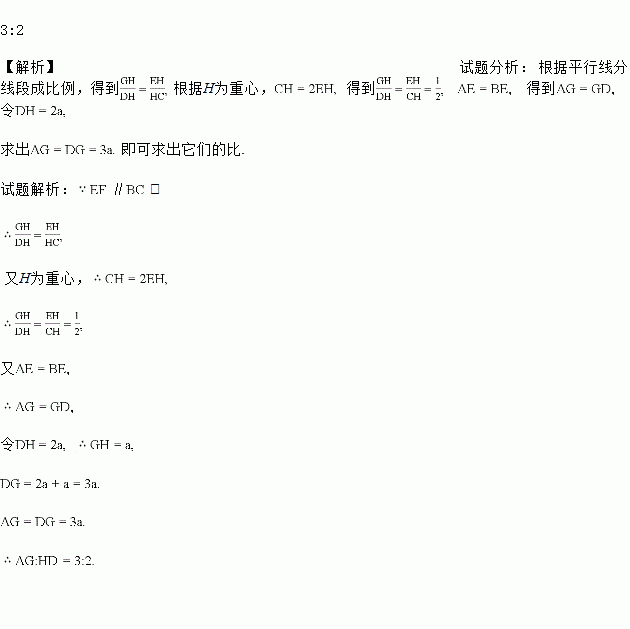 如图,点H是△ABC的重心,EF∥BC交AD于点G,求AG∶DH的值.
