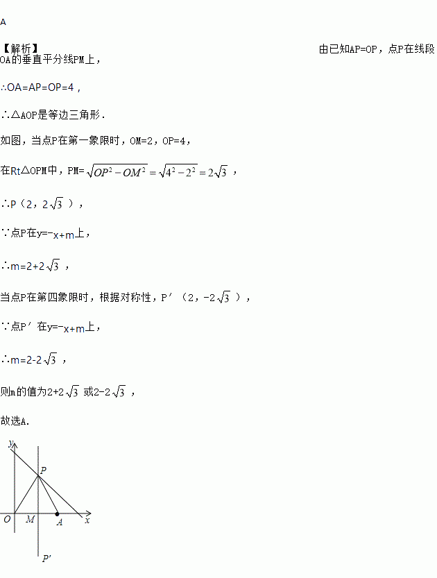 平面直角坐标系中,O是坐标原点,点A的坐标是,点P在直线上,且则m的值为