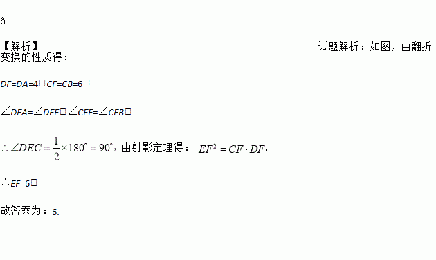 (∠A,∠B)向内折起,点A,B恰好落在CD边的点F处,若AD=4,BC=9,则EF的值是___________