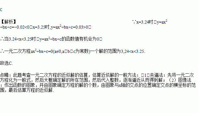 判断方程ax2+bx+c=0(a≠0,a,b,c为常数)的一个解x的范围是( )