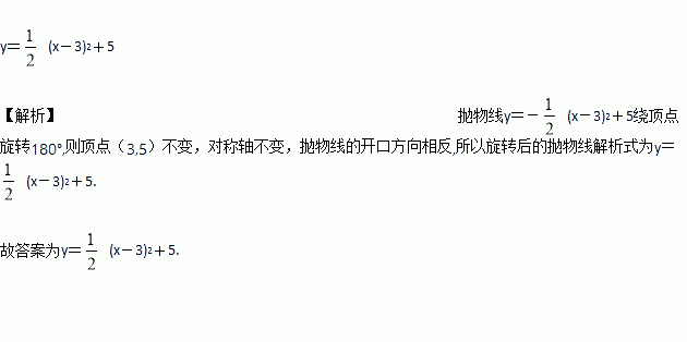 将抛物线y=- (x-3)2+5绕顶点旋转180°后的关系式为__________________.