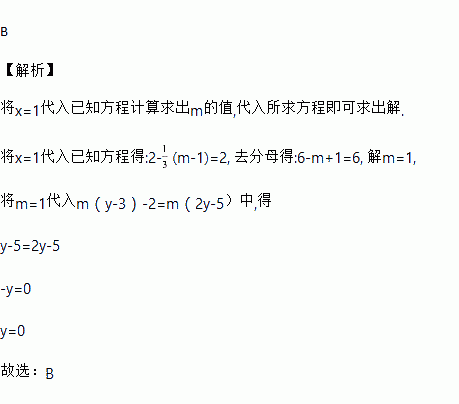 若x=1是方程2-(m-x)=2x的解,则关于y的方程m(y-3)-2=m(2y-5)的解是( )