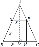 设BC=a,BC边上的高AD=h,PS=x,RS=y,由△ASR∽△ABC,得