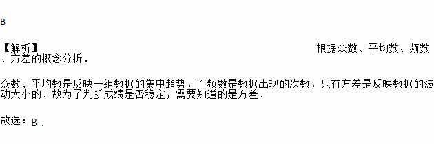 A. 众数 B. 方差 C. 平均数 D. 频数