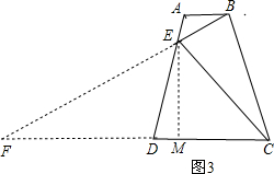 当∠CEB=90°时,延长BE交CD的延长线于F点,作EM⊥CD于M,如图3,