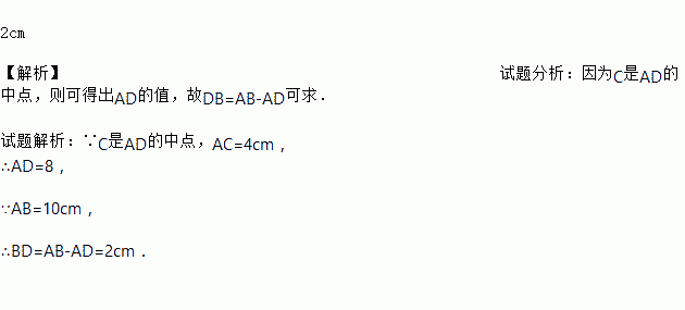 C、D是线段AB上的两点,点C是AD的中点,,求DB的长度.