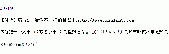 据统计,全球每分钟约有8500000吨污水排入江河湖海,则每分钟的排污量用科学记数法表示应是___________吨.