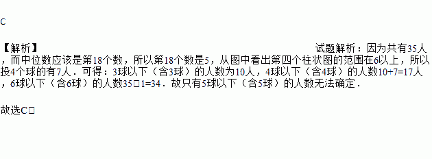 如图为某班35名学生投篮成绩的长条图,其中上面部分数据破损导致数据不完全.已知此班学生投篮成绩的中位数是5,则根据图,无法确定下列哪一选项中的数值( )