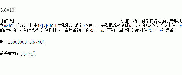 同步卫星在赤道上空大约36000000米处,请将数36 000 000用科学记数法表示为____________.