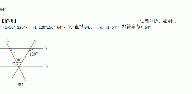 如图,直线l1∥l2,并且被直线l3,l4所截,则∠α=________.
