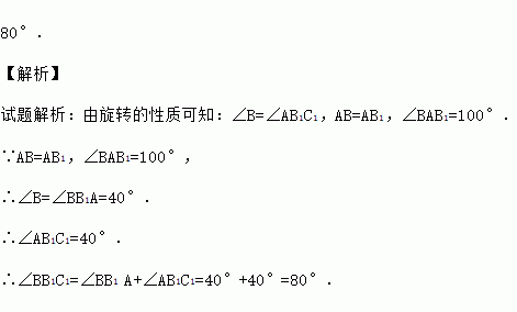如图,将△ABC绕点A按逆时针方向旋转100°,得到△AB1C1,若点B1在线段BC的延长线上,则∠BB1C1的大小是__________度.