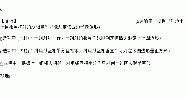 C. 对角线互相平分且相等,对角线互相垂直 D. 一组邻边相等,对角线互相平分