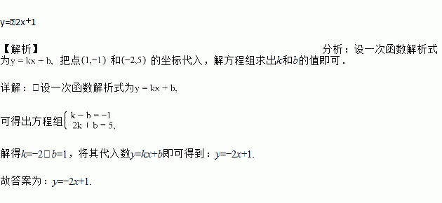 一次函数的图象经过点(1,﹣1)、(﹣2,5),则一次函数的解析式为_____.