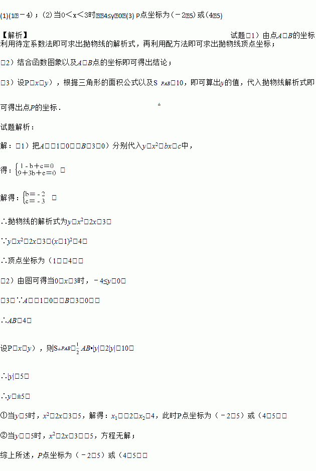 (3)点P为抛物线上一点,若S△PAB=10,求出此时点P的坐标.