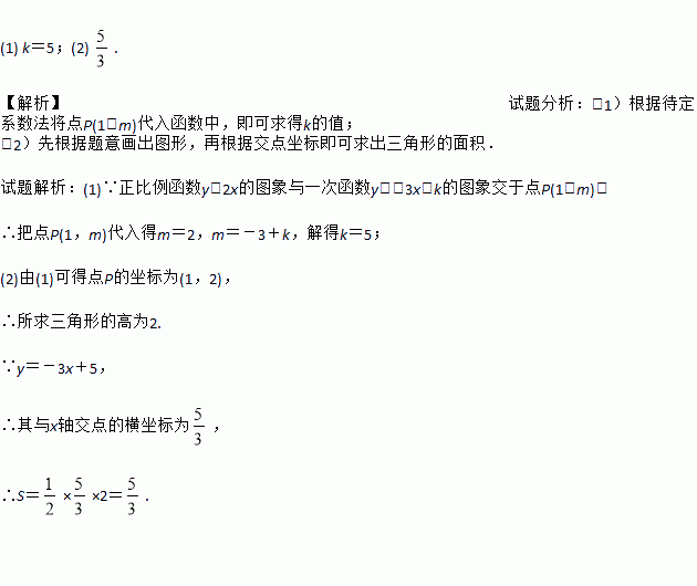正比例函数y=2x的图象与一次函数y=-3x+k的图象交于点P(1,m),求: