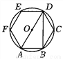 如图所示,正六边形ABCDEF内接于⊙O,则∠ADB的度数是().