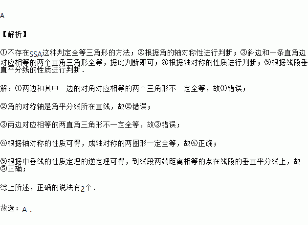 ①两边和其中一边的对角对应相等的两个三角形全等.