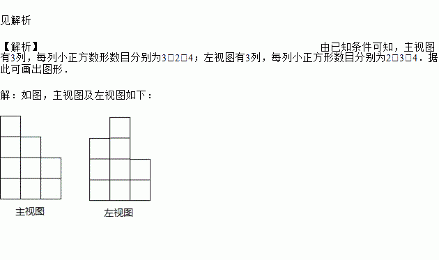 下图是几个小正方体所搭几何体的俯视图,小正方形的数字表示该位置小正方体的个数.请画出这个几何体的主视图和左视图.