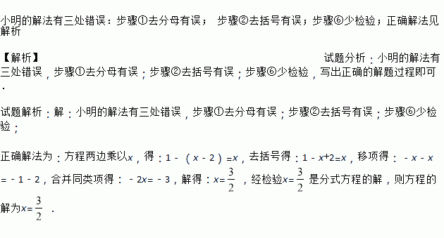 =1的过程如图.请指出他解答过程中的错误,并写出正确的解答过程.