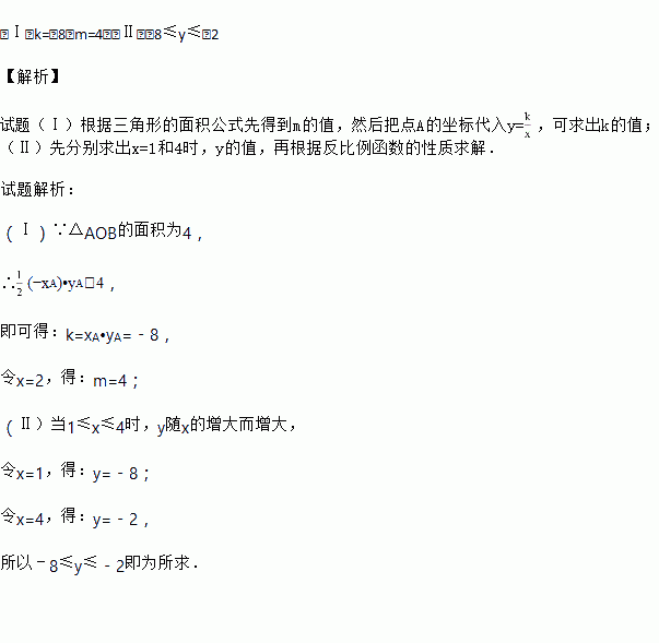 (2)设C(x,y)是该反比例函数图象上一点,当1≤x≤4时,求函数值y的取值范围.