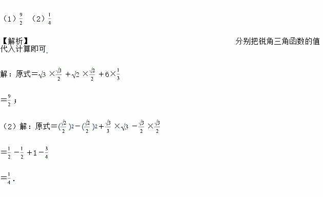 (2)sin245°-cos245°+tan 30°tan 60°-sin 60°cos 30°.