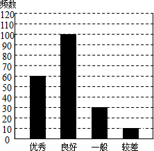 分析:(1)根据频数分布直方图60的频率是0.3,计算可得良好的频率为0.5,得出b的频数为30,c的频数为10,