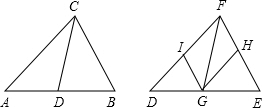 分析:画出△ABC的任意一条中线即可把△ABC分为面积相等的两个三角形;可先把△DFE分成面积相等的两部分,进而再做分得两个三角形的中线即可把△DEF分成面积相等的四部分.