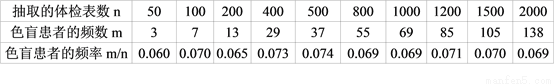 根据表中数据,估计在男性中,男性患色盲的概率为____________(结果精确到0.01)