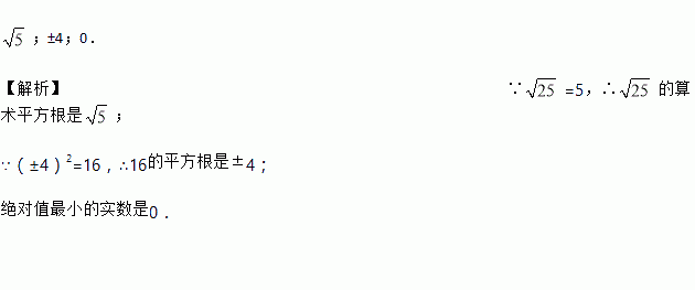 的算术平方根是 .16的平方根是 ,绝对值最小的实数是 .