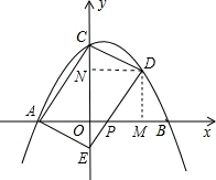 (2)本题要先求出D点的坐标,由于DE被x轴平分,设DE交x轴于P,过D作DM⊥x轴于M,则有△EPO≌△DPM,那么D,E两点的纵坐标互为相反数,以此可求出D点的纵坐标,然后代入抛物线的解析式中即可求出D点的坐标,然后可根据D点的坐标求出DE的长,同理可求出AC,AE,CD的长,由此可判断出四边形AEDC的形状.