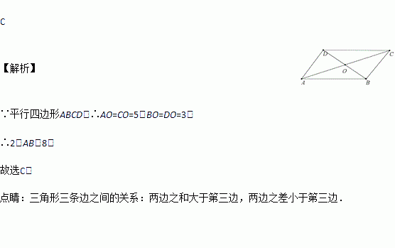 已知?ABCD的对角线AC,BD的长分别为10,6,则AB长的范围是( )