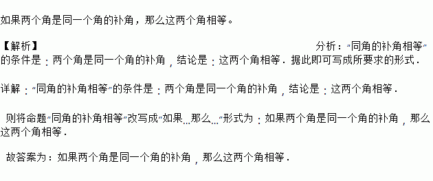 把“同角的补角相等”写成“如果……那么……”的形式为____________________________。