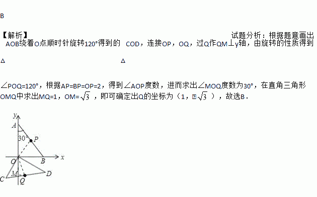 如图,将斜边长为4的直角三角板放在直角坐标系xOy中,两条直角边分别与坐标轴重合,P为斜边的中点.现将此三角板绕点O顺时针旋转120°后点P的对应点的坐标是( )