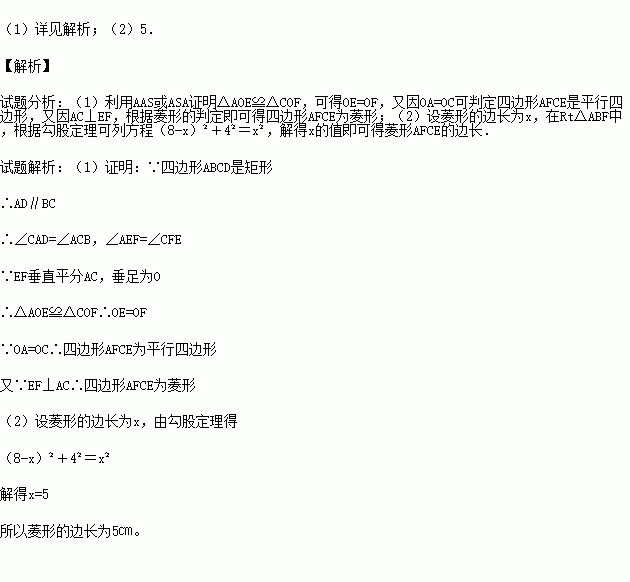 (10分)如图,在矩形ABCD中,AB=4cm,BC=8cm,AC的垂直平分线EF分别交AD,BC于点E,F,垂足为点O.