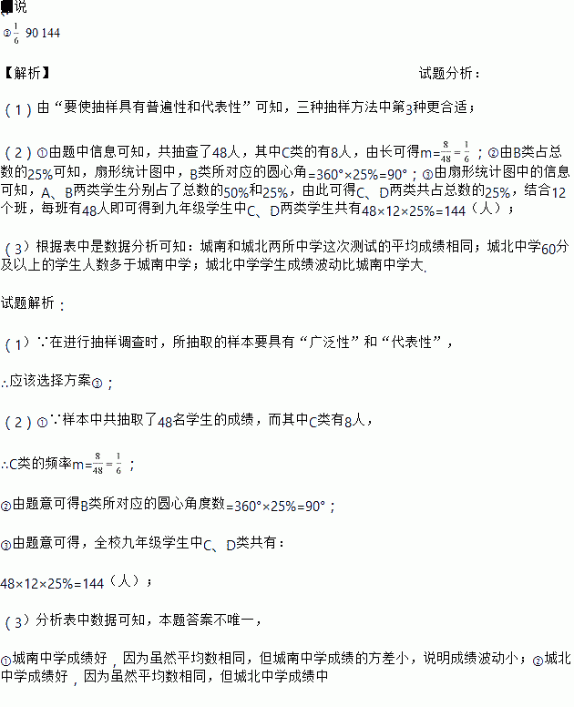(1)要从九年级学生中抽取一个48人的样本,你认为以下抽样方法中最合理的是