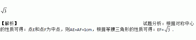 如图,将菱形纸片ABCD折叠,使点A恰好落在菱形的对称中心O处,折痕为EF,若菱形ABCD的边长为2cm,∠A=120°,则EF=________cm.
