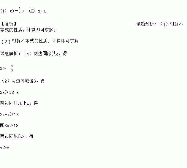 利用不等式的基本性质,将下列不等式化为或的形式: