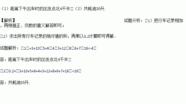 (2)若汽车耗油量为0.2L/km,这天下午小张共耗油多少升?