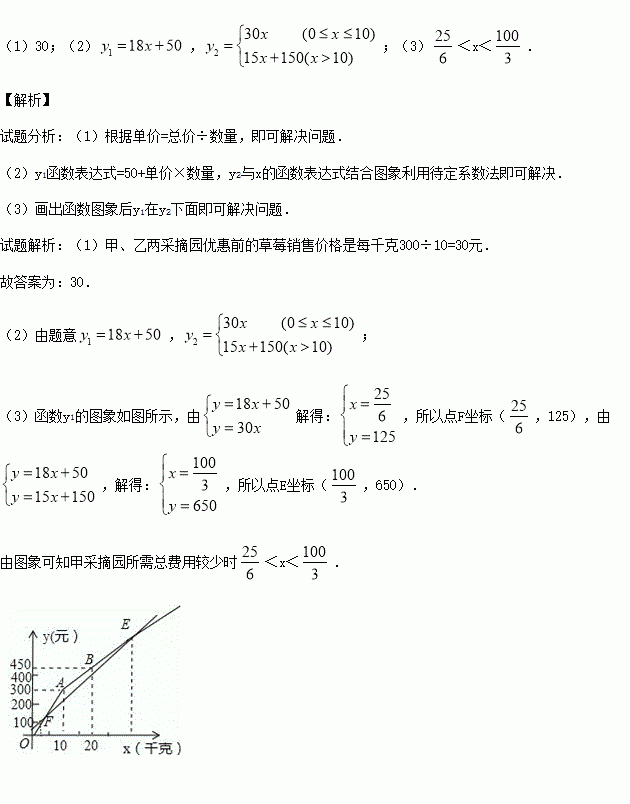 (1)甲、乙两采摘园优惠前的草莓销售价格是每千克 元;