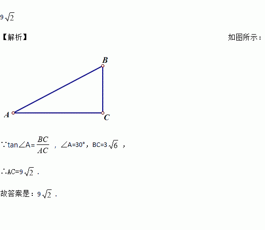 在Rt△ABC中,∠C=90°,∠A=30°,BC=3,则AC的长为_____.(结果保留根号)