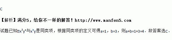 若﹣x3ya与xby是同类项,则a+b的值为( )
