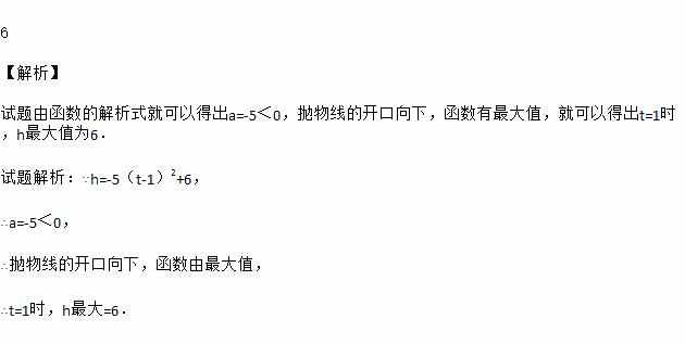 一小球被抛出后,距离地面的高度h(米)和飞行时间t(秒)满足下面函数关系式:h=-5(t-1)2+6,则小球距离地面的最大高度是__________.