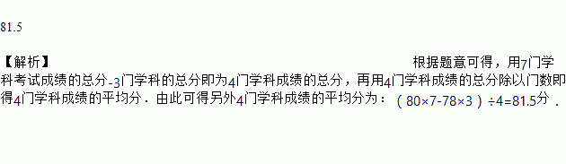 某学生7门学科考试成绩的平均分是80分,其中门学科都考了78分,则另外4门学科成绩的平均分是_____________.![]()