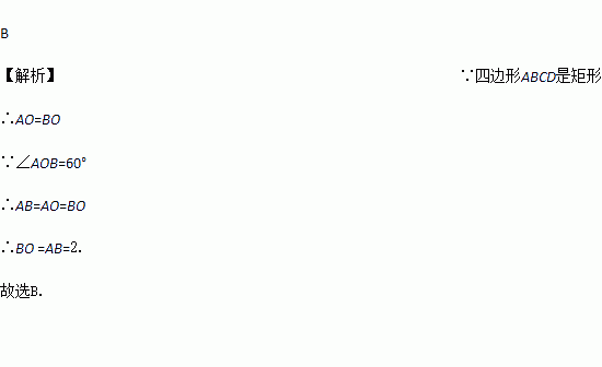 如图,在矩形ABCD中,AB=2,∠AOB=60°,则OB的长为( )