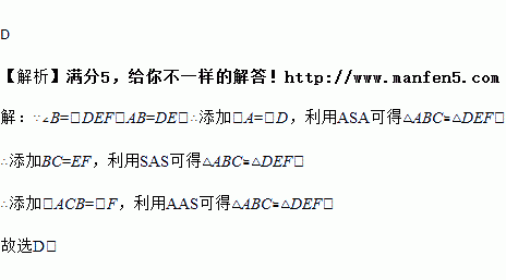 如图,在△ABC和△DEF中,∠B=∠DEF,AB=DE,若添加下列一个条件后,仍然不能证明△ABC≌△DEF,则这个条件是( )