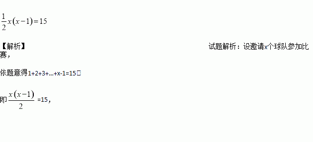 要组织一次篮球联赛,赛制为单循环形式(每两队之间都赛一场),计划安排15场比赛,问应邀请多少个球队参加比赛?设应邀请x个球队参加比赛,则可列方程为______________________